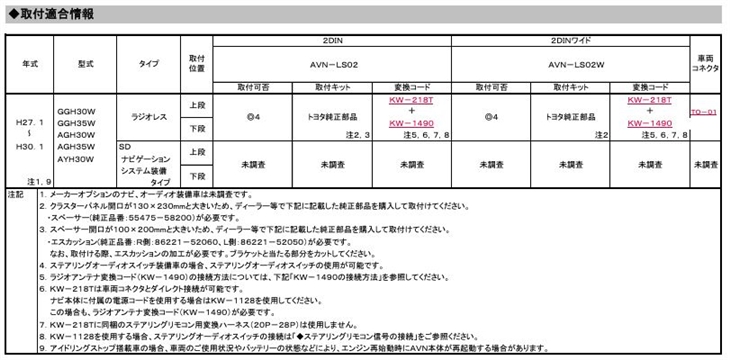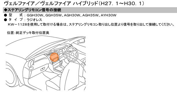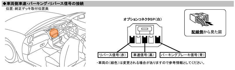 イクリプス製品取付資料から、ヴェルファイア/ヴェルファイア ハイブリッド(H27.1〜H30.1)の車両側車速・パーキング・リバース信号接続情報になります。