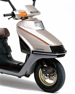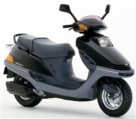 ハイスクリーンが付き、堂々とした車体とスポーティなルックス。29Lのメットインスペースと水冷単気筒エンジンを搭載。当時クラス最強の21馬力ハイパワーエンジンを積み、若者から大人まで支持を得ました。