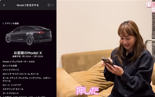 なんと購入画面には、「デュアルモーターAWD Model X」の価格が1446万9000円、「トライモーターAWD Model X」の価格が1666万9900円と表示されており、ミキティは「デュアルモーターAWD Model X」を選択していました。