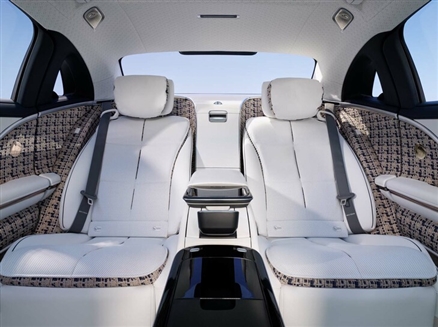 インテリアには、ディープシーブルーパイピング入りの専用クリスタルホワイト内装や、ローズゴールドのアクセントを随所に施したオパールホワイトのインテリアトリム、スリーポインテッドスターを模したアクセント入りのクリスタルホワイトナッパレザールーフライナーを採用しています。