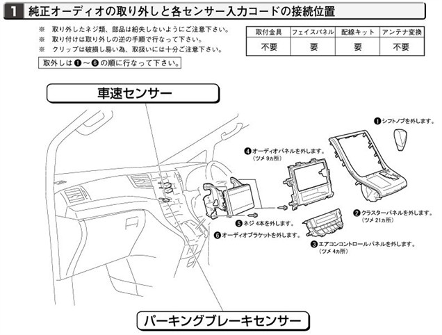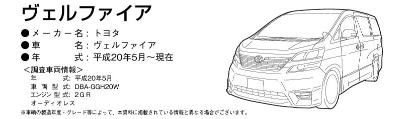 ヴェルファイア平成20年5月〜、20 Vellfire (GGH20W)の純正オーディオの取り外しと各センサー入力コードの接続位置の資料になります。
