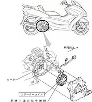 全車両、ステーターコイルを対策品と交換するとともに、周辺部品(ガスケット、ワッシャ等)を新品と交換する。