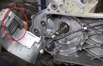 この制御モーターから、次に解説するリダクションギアを介しプーリの裏にあるギアを動かします。Sマチックのプーリーベルト幅を調整しています。