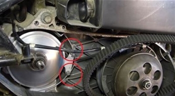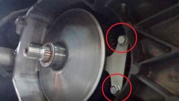 ムーバブルドライブプーリーの外し方は、まず2か所ある10mmの六角ボルトを緩めステーを取ります。