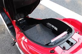 包括的な収納力には、高価なヘルメット、雨具などを雨水から防ぐと共に、鍵がかけられることで、マニュアルバイクにはない防犯上の利点があります。またこの大きなシートには、着座位置とともに、ドライバーをホールドする役割も担っているようです。