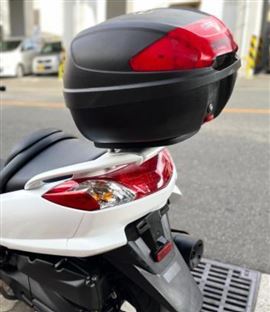 包括的な収納力と施錠、こうしたマニュアルバイクにはない防犯上の利点があります。また後部バーエンドにはGIVIなどの別売りBOXの取付が可能です。